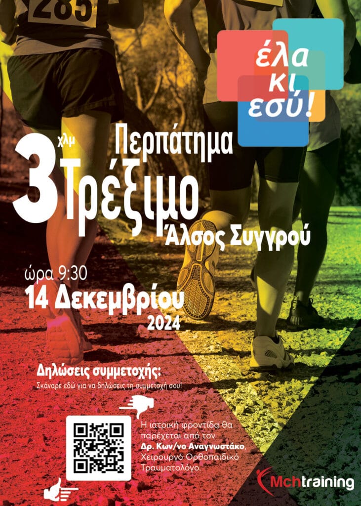 Την Κυριακή 14 Δεκεμβρίου 2024, το Άλσος Συγγρού γέμισε με ενέργεια και χαμόγελα στη δράση Έλα κι Εσύ!, όπου δεκάδες συμμετέχοντες απόλαυσαν μια μοναδική εμπειρία άσκησης και ευεξίας.